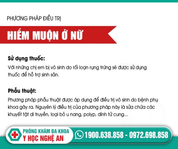 Tại Phòng khám đa khoa y học Nghệ An, để chữa bệnh vô sinh thứ phát ở nữ bác sĩ căn cứ theo nguyên nhân để đưa ra phác đồ điều trị.